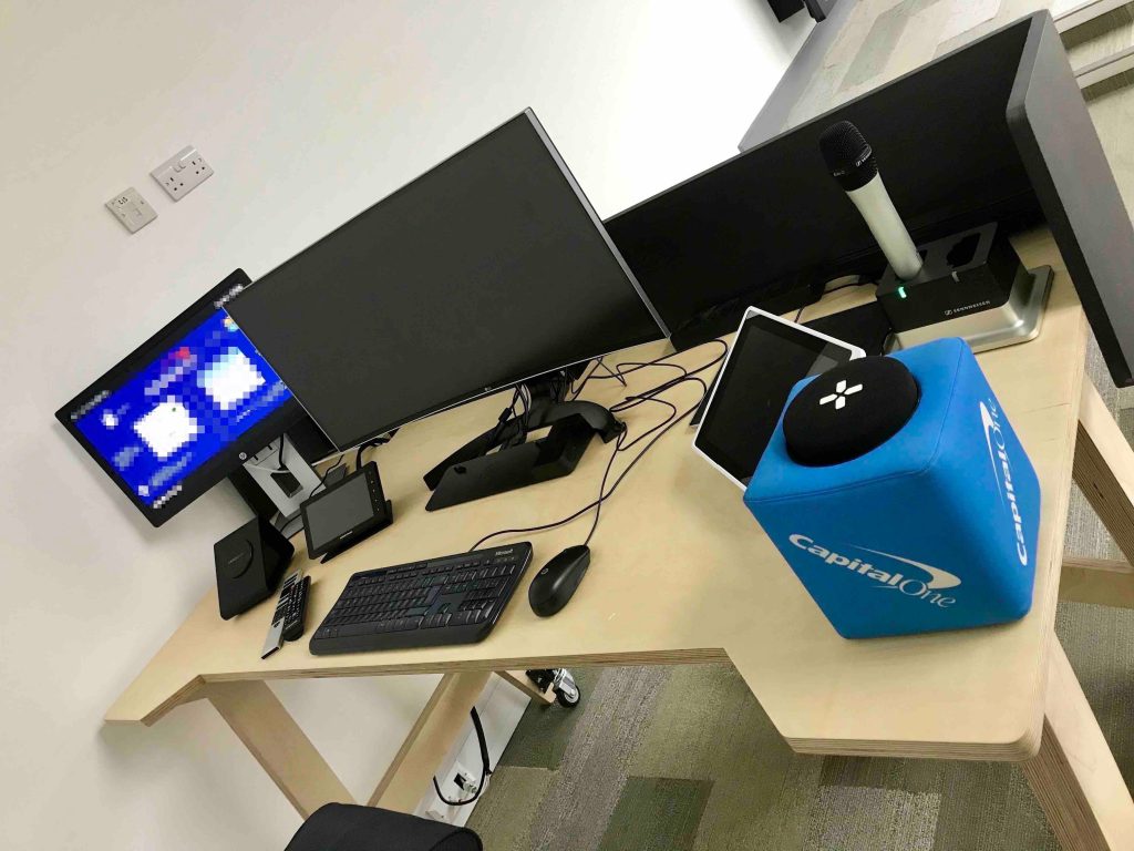 In association with Jigsaw24, VITA were employed to overhaul the ailing theatre space at Capital One, Nottingham. The technical requirements were incredibly complicated and client focussed. Particular challenges were poor room acoustics, bank-level IT security, the integration of niche conferencing hardware, a custom GUI based control system and safe unattended venue operation.